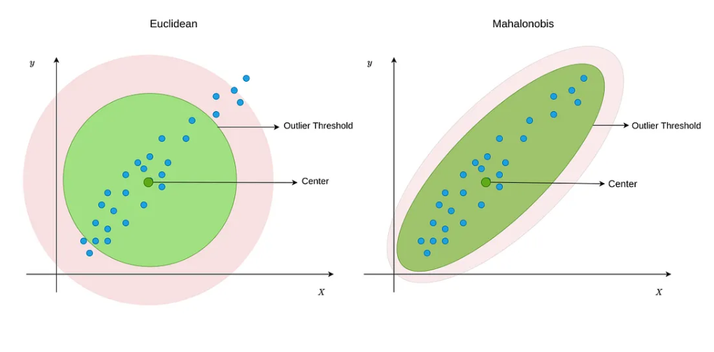 | Mahalanobis | \((X_i - X_j)^\top \Sigma^{-1} (X_i - X_j)\) | Scale-invariant, multivariate | High-dimensional issues |